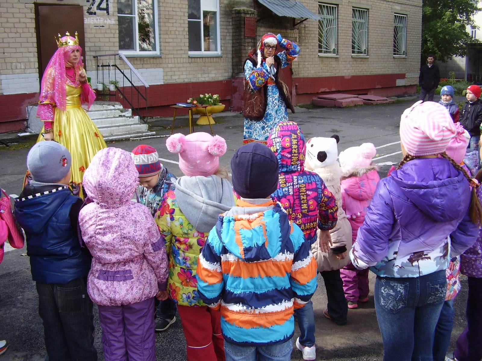 2 сентября артисты театра "Лабиринт истории" провели для ребят развлечение по мотивам "Сказки о потерянном времени". Ребята вместе с Королевой Осенью побывали на уроках в волшебной школе, учили уму-разуму нерадивого Клоуна, который постоянно терял время впустую и превратился в старичка из-за проделок Бабы Яги. Выполнив все задания Бабы Яги, ребята расколдовали Клоуна.